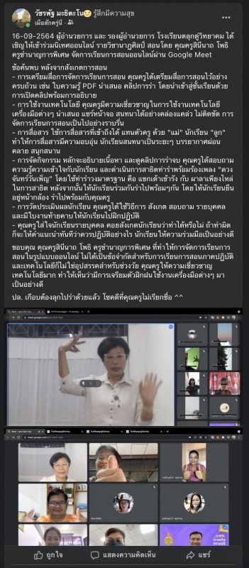 วันที่ 16 กันยายน 2564 ศน.วัชรพัฐ มะธิตะโน เข้าร่วมการนิเทศการจัดการเรียนการสอนออนไลน์