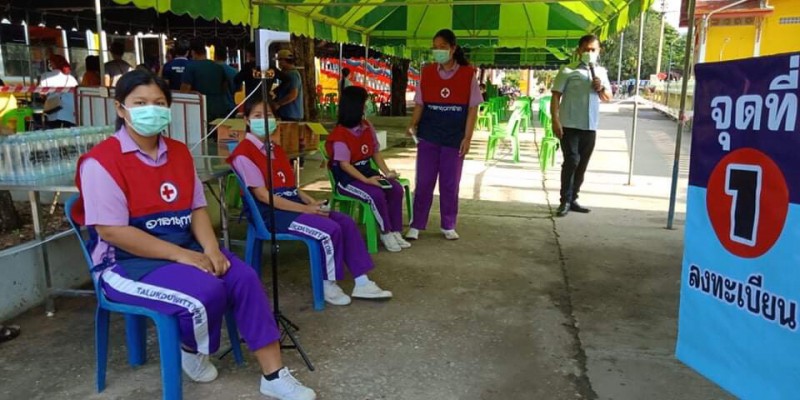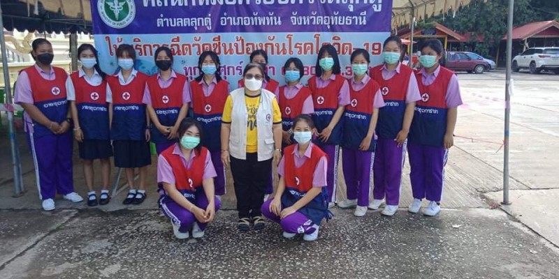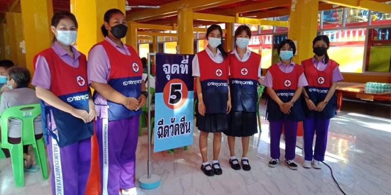 อาสายุวกาชาดโรงเรียนตลุกดู่วิทยาคม ร่วมให้บริการฉีดวัคซีนป้องกันโรคโควิด-19 กับคลินิกหมอครอบครัวตลุกดู่ ณ วัดตลุกดู่