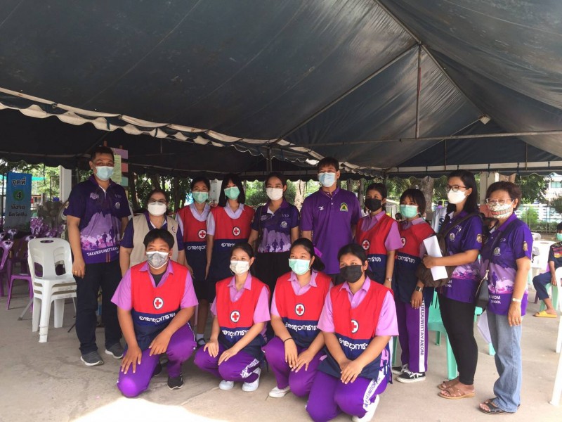 นักเรียนโรงเรียนตลุกดู่วิทยาคม รับการฉีดวัคซีนไฟเซอร์ และอาสายุวกาชาดโรงเรียนตลุกดู่วิทยาคม ร่วมให้บริการฉีดวัคซีนป้องกันโรคโควิด-19 กับโรงพยาบาลทัพทัน