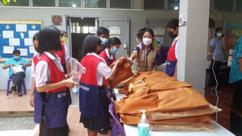 และนายละเมียด คำรื่น ครูชำนาญการพิเศษ โรงเรียนตลุกดู่วิทยาคม นำนักเรียนอาสายุวกาชาดเข้าร่วมให้บริการ