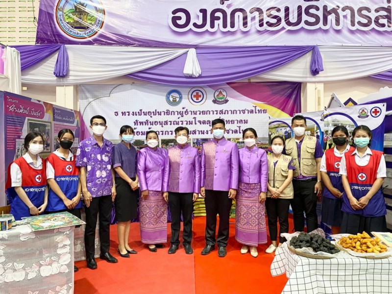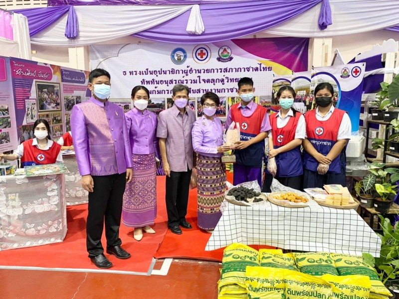 นายสาธิต ร้อยแก้ว นางสาวปราณี จันทฤกษ์ ครูโรงเรียนตลุกดู่วิทยาคมและนักเรียนอาสายุวกาชาด ร่วมจัดแสดงนิทรรศการ