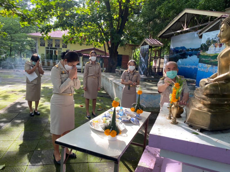 รองผู้อำนวยการโรงเรียนตลุกดู่วิทยาคม และคณะครูโรงเรียนตลุกดู่วิทยาคม ไหว้เจ้าที่และสิ่งศักดิ์สิทธิ์ประจำโรงเรียน