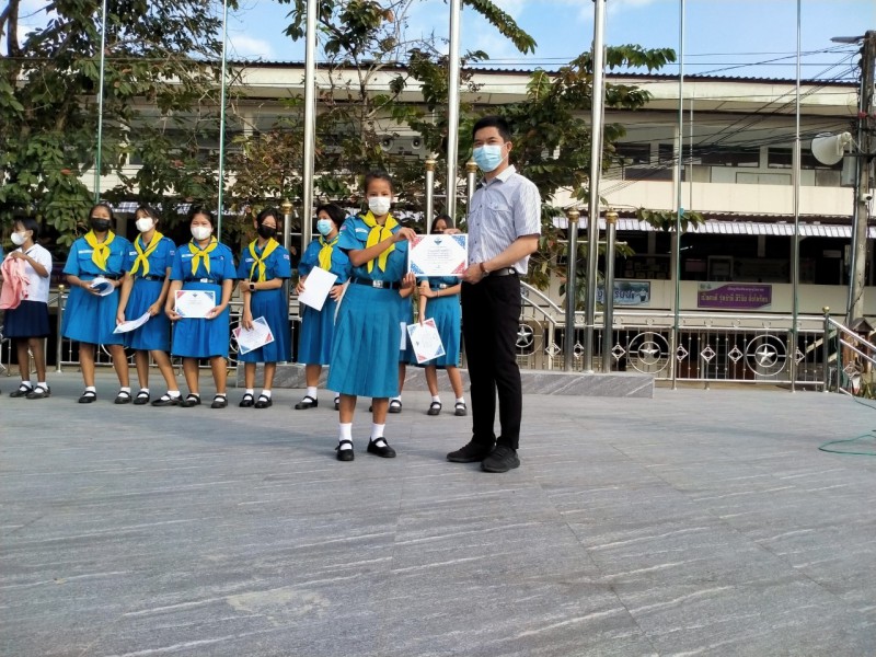 มอบเกียรติบัตรให้ยุวกาชาด ที่เข้าร่วมการอบรมในงานชุมนุมยุวกาชาดส่วนภูมิภาค เฉลิมพระเกียรติพระบาทสมเด็จพระเจ้าอยู่หัว มอบโดยนายปวิชา พรศิรชัย
