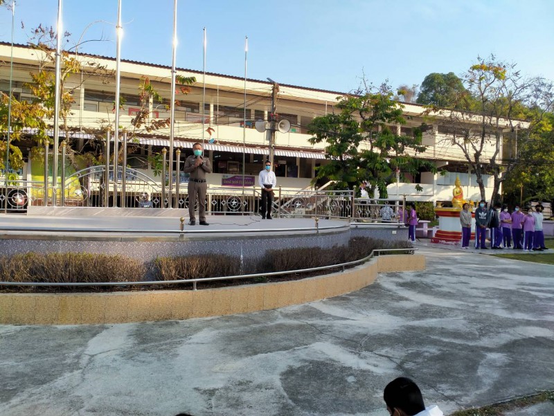 นายละเมียด คำรื่น หัวหน้ากลุ่มบริหารกิจการนักเรียน เชิญเจ้าหน้าที่ตำรวจ จากสถานีตำรวจภูธรตำบลตลุกดู่