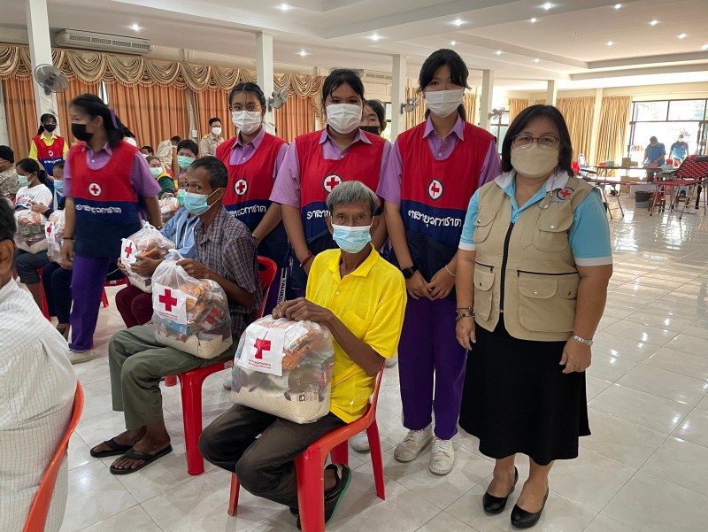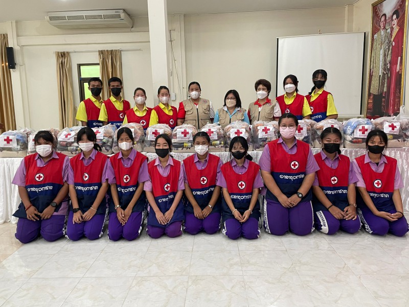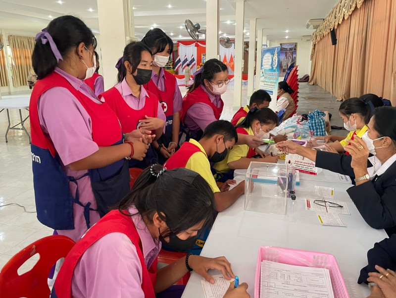 นางสุนันทา โลหะการก หัวหน้าชมรมอาสายุวกาชาด นำนักเรียนอาสายุวกาชาด ช่วยงานบริการผู้บริจาคโลหิต