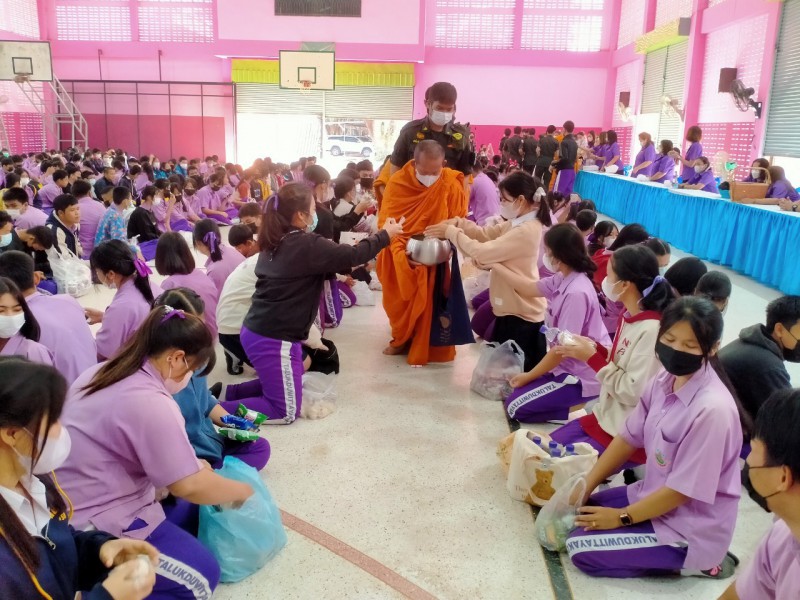 นายปวิช พรศิรชัย ผู้อำนวยการโรงเรียนตลุกดู่วิทยาคม เป็นประธานในการจัดกิจกรรมบำเพ็ญกุศล ตักบาตรข้าวสารอาหารแห้ง