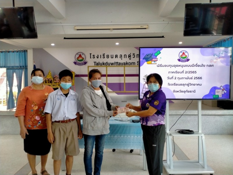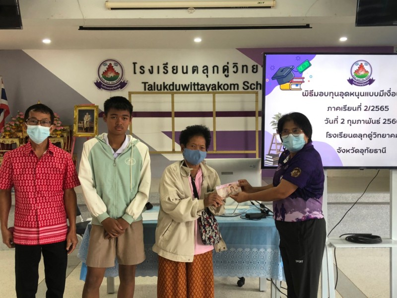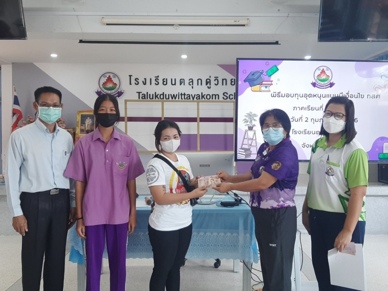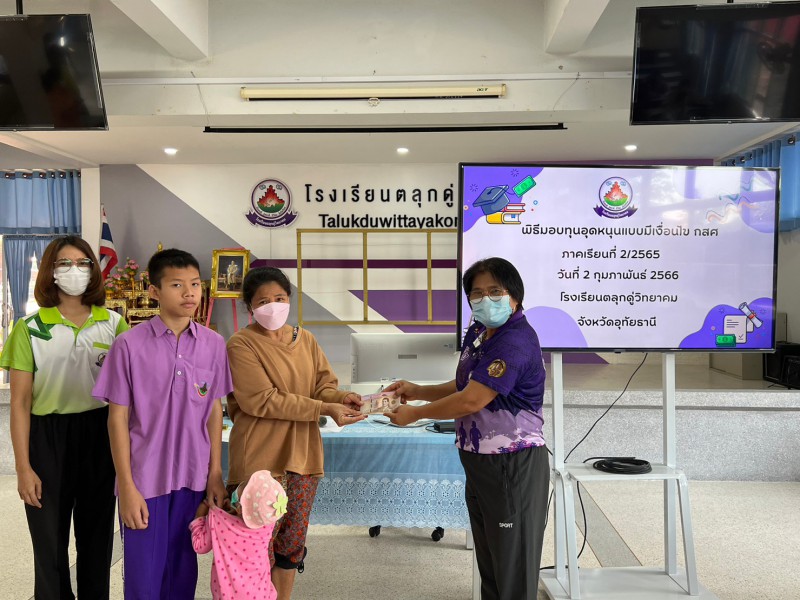 นางวิไล คำสิทธิ์ หัวหน้ากลุ่มบริหารงานวิชาการโรงเรียนตลุกดู่วิทยาคม เป็นประธานมอบทุนอุดหนุนแบบมีเงื่อนไข