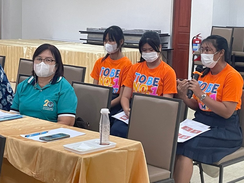 นางสุนันทา โลหะการก ที่ปรึกษาชมรม TO BE NUMBER ONE โรงเรียนตลุกดู่วิทยาคม และนักเรียนแกนนำ