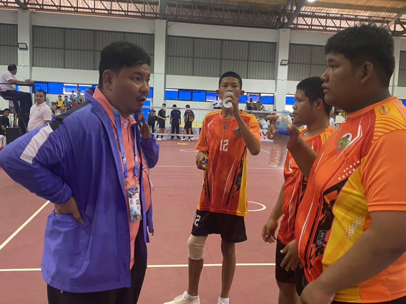 นายอดิศร ปั้นพระ ครูโรงเรียนตลุกดู่วิทยาคม นำนักเรียนเข้าร่วมการแข่งขันเซปักตะกร้อ