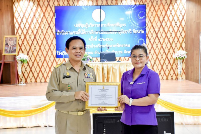 ผู้อำนวยการสำนักงานเขตพื้นที่การศึกษามัธยมศึกษาอุทัยธานี ชัยนาท ในงานการประชุมผู้บริหารสัญจร สำนักงานเขตพื้นที่การศึกษามัธยมศึกษาอุทัยธานี ชัยนาท ครั้งที่ 4/2566 ณ หอประชุมโรงเรียนชัยนาทพิทยาคม โรงเรียนชัยนาทพิทยาคม จังหวัดชัยนาท