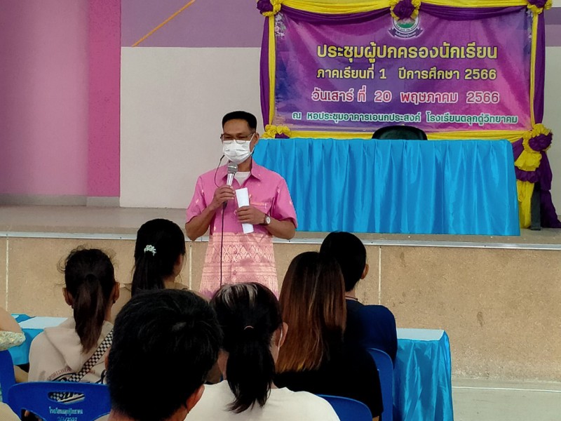 นายปวิช พรศิรชัย ผู้อำนวยการโรงเรียนตลุกดู่วิทยาคม เป็นประธานในการดำเนินการประชุมผู้ปกครองนักเรียน