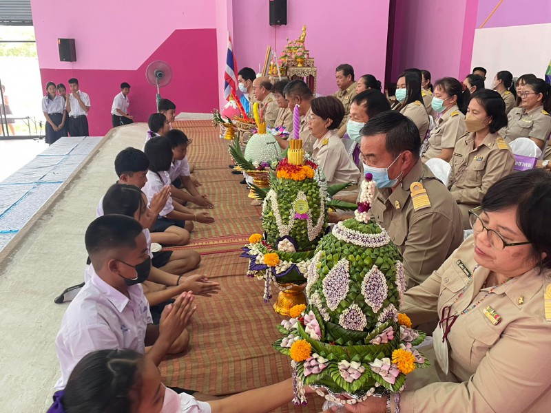 เวลา 9.00 น. นางสาวสุชาดา หาญสาริกิจ หัวหน้างานกิจกรรมวันสำคัญและสืบสานประเพณี จัดพิธีไหว้ครู