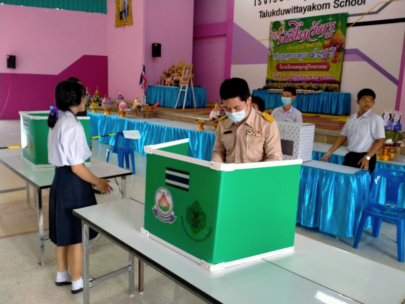 เวลา 14.00 น. นายอดิศร ปั้นพระ หัวหน้างานสภานักเรียนและทีมงานสภานักเรียน จัดกิจกรรมเลือกตั้งสภานักเรียน