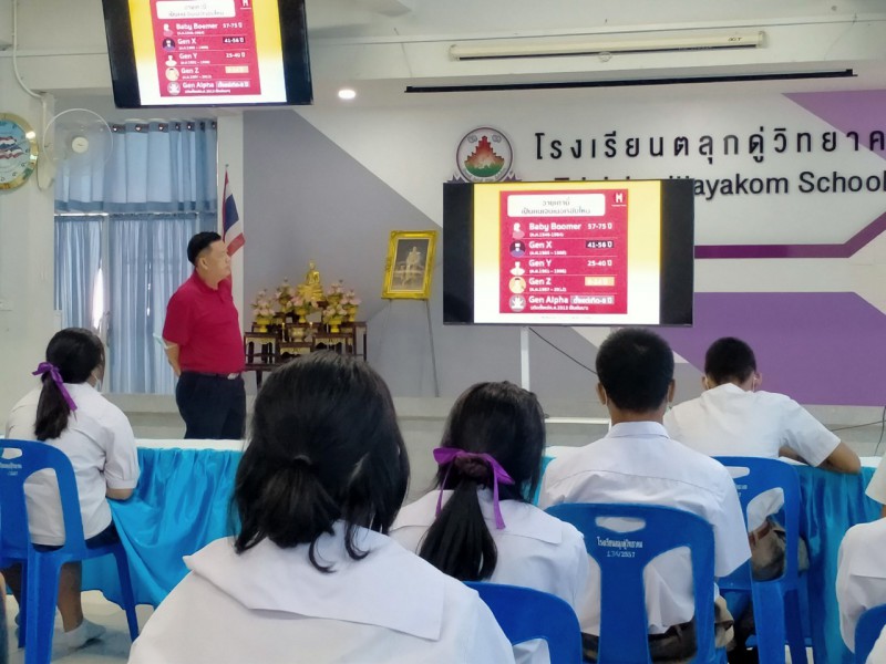 เป็นประธาน ในการอบรมนักเรียนชั้นมัธยมศึกษาปีที่ 3/1, 3/2 ตามโครงการอบรมเพื่อสร้างภูมิคุ้มกันทางสังคม