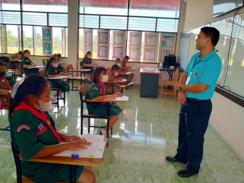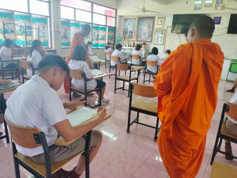 วันพฤหัสบดีที่ 7 ธันวาคม 2566 นายละเมียด คำรื่น หัวหน้ากิจกรรมสอบธรรมศึกษา จัดสอบธรรมศึกษาชั้นเอก โท ตรี