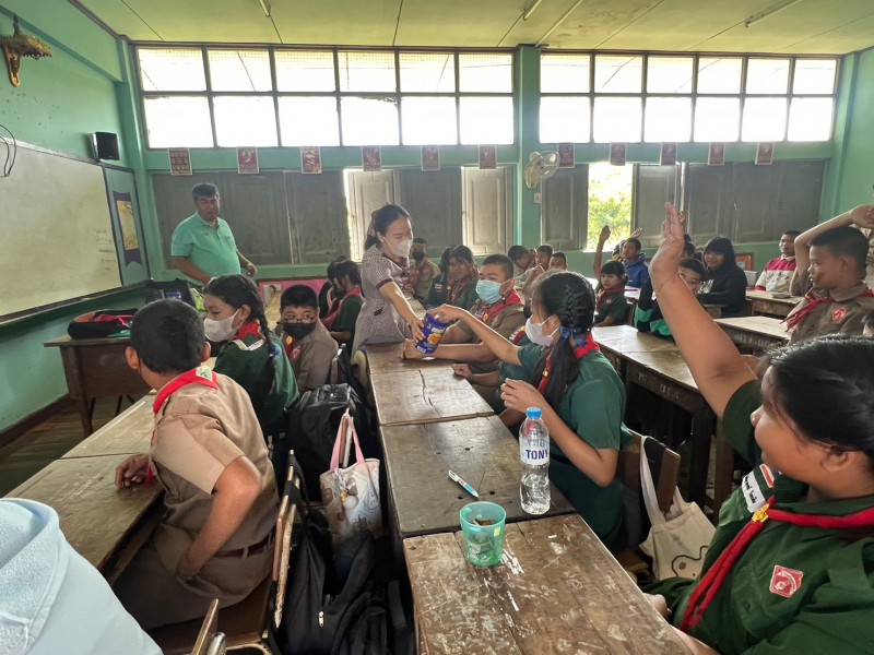 และนักเรียนระดับชั้นมัธยมศึกษาปีที่ 3 และมอบของขวัญสวัสดีปีใหม่ 2567 ให้กับโรงเรียนเรียนที่แนะแนวการศึกษาต่อ