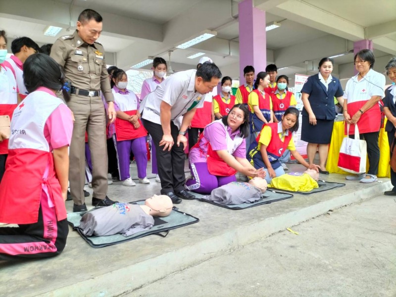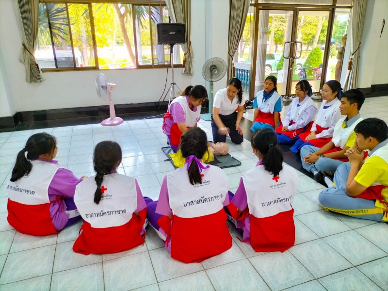 ที่ปรึกษาชมรมอาสากาชาด นำนักเรียนเข้ารับการอบรมฝึกทักษะ CPR และปฐมพยาบาลการสำลัก (Choking)