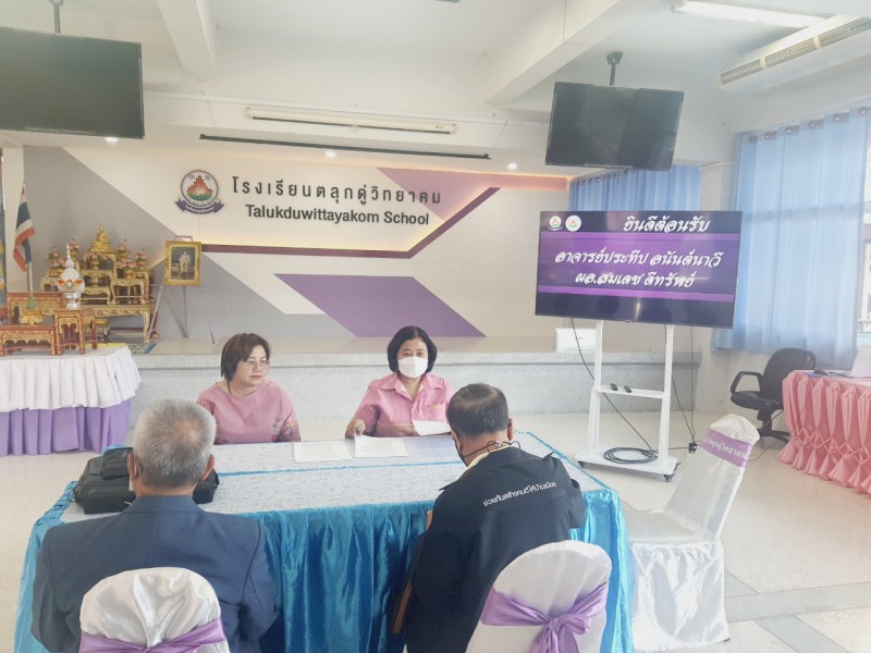 นายละเมียด คำรื่น หัวหน้ากลุ่มบริหารกิจการนักเรียน ร่วมให้การต้อนรับ ณ ห้องประชุมเสมากูลอนุสรณ์โรงเรียนตลุกดู่วิทยาคม