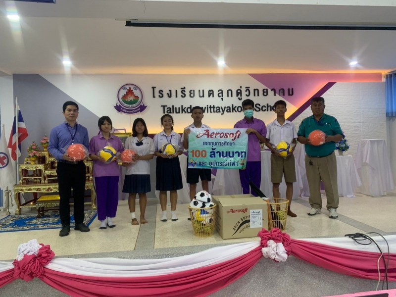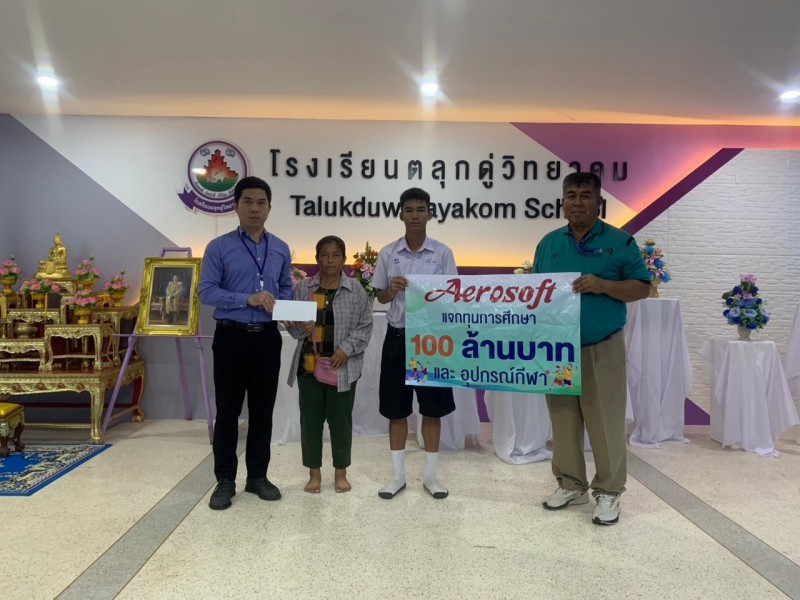และรับมอบอุปกรณ์กีฬา จากโครงการ Aerosoft แจกทุนการศึกษา 100 ล้านบาท ณ ห้องประชุมเสมากูลอนุสรณ์